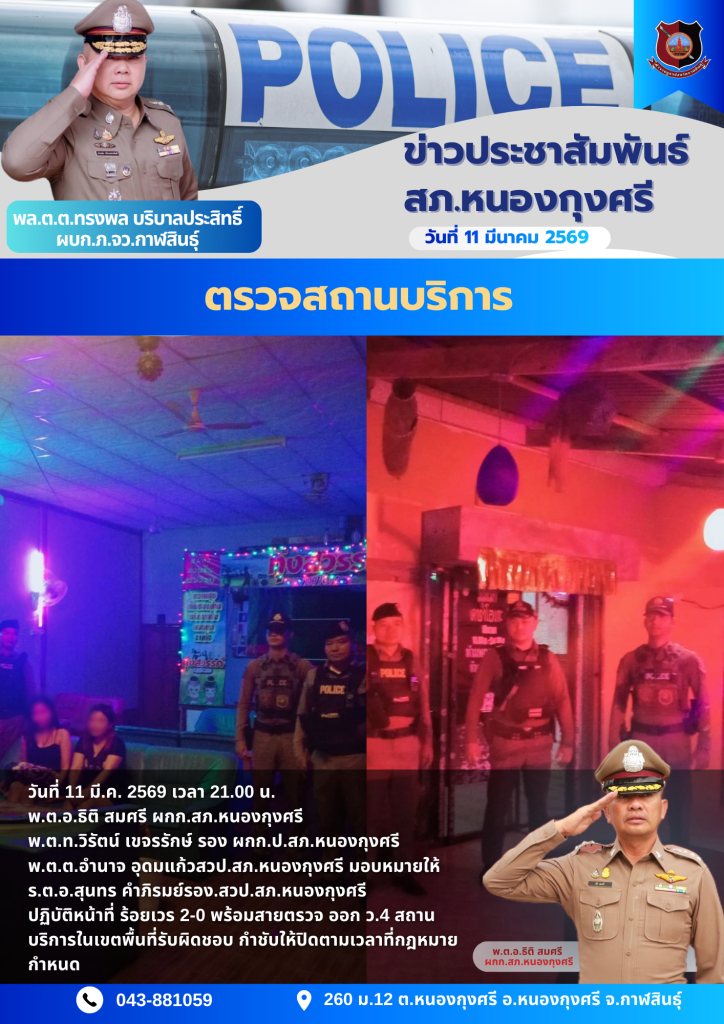 ตรวจสถานบริการ 12 มีนาคม 2569 โดย admin / ข่าวประชาสัมพันธ์,ข่าวกิจกรรม,ข่าวประชาสัมพันธ์,ข่าวประชาสัมพันธ์,ข่าวฝากประชาสัมพันธ์,ไม่มีหมวดหมู่ FacebookFacebookXXLINELine