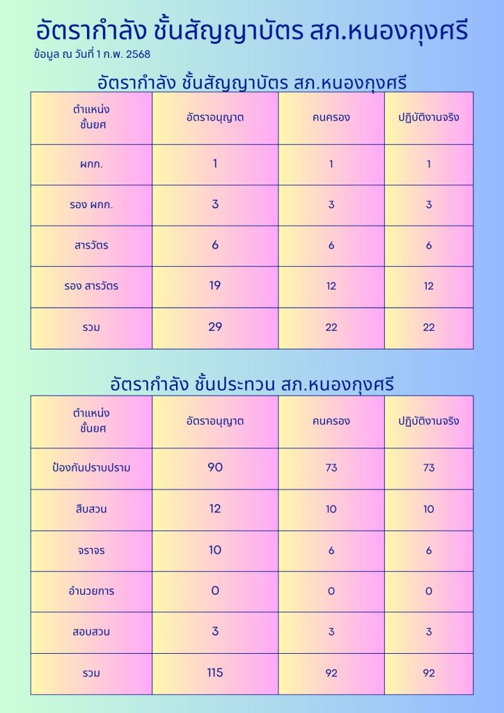 สถานภาพกำลังข้าราชการตำรวจสถานีตำรวจภูธรหนองกุงศรี